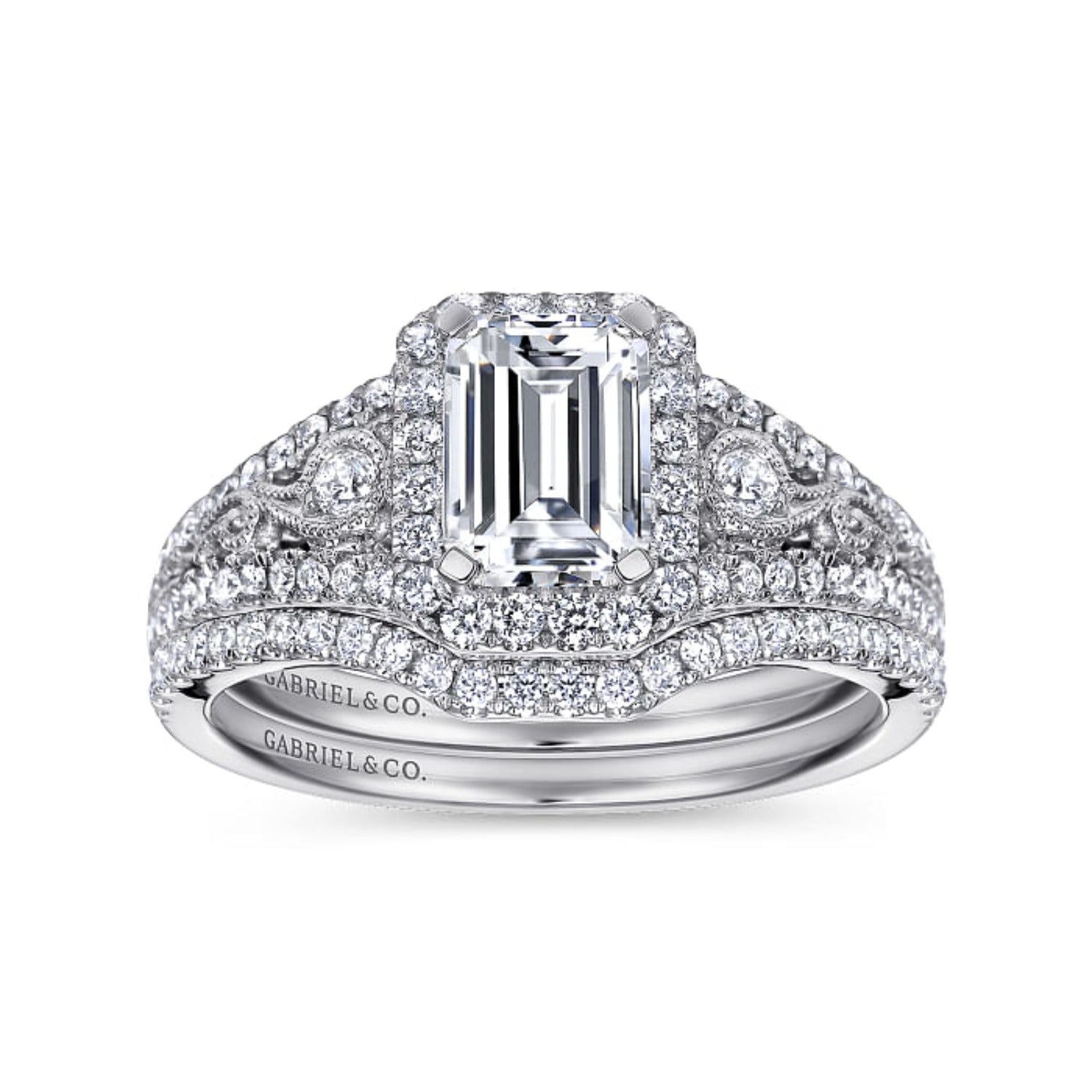 HOME / Gabriel & Co. "Marlena" Emerald Cut Halo Diamond Engagement Ring