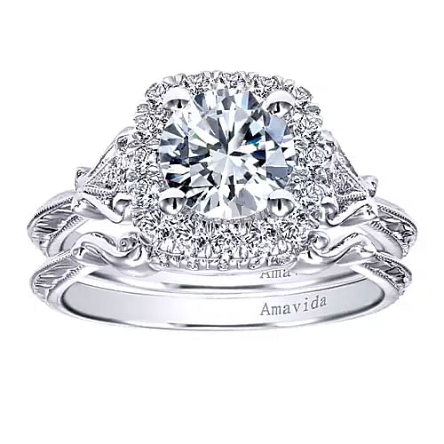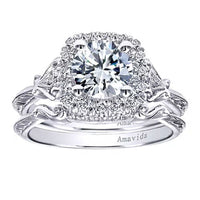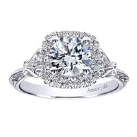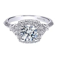 Gabriel & Co."Mercer" Cushion Halo Vintage Style Diamond Engagement Ring