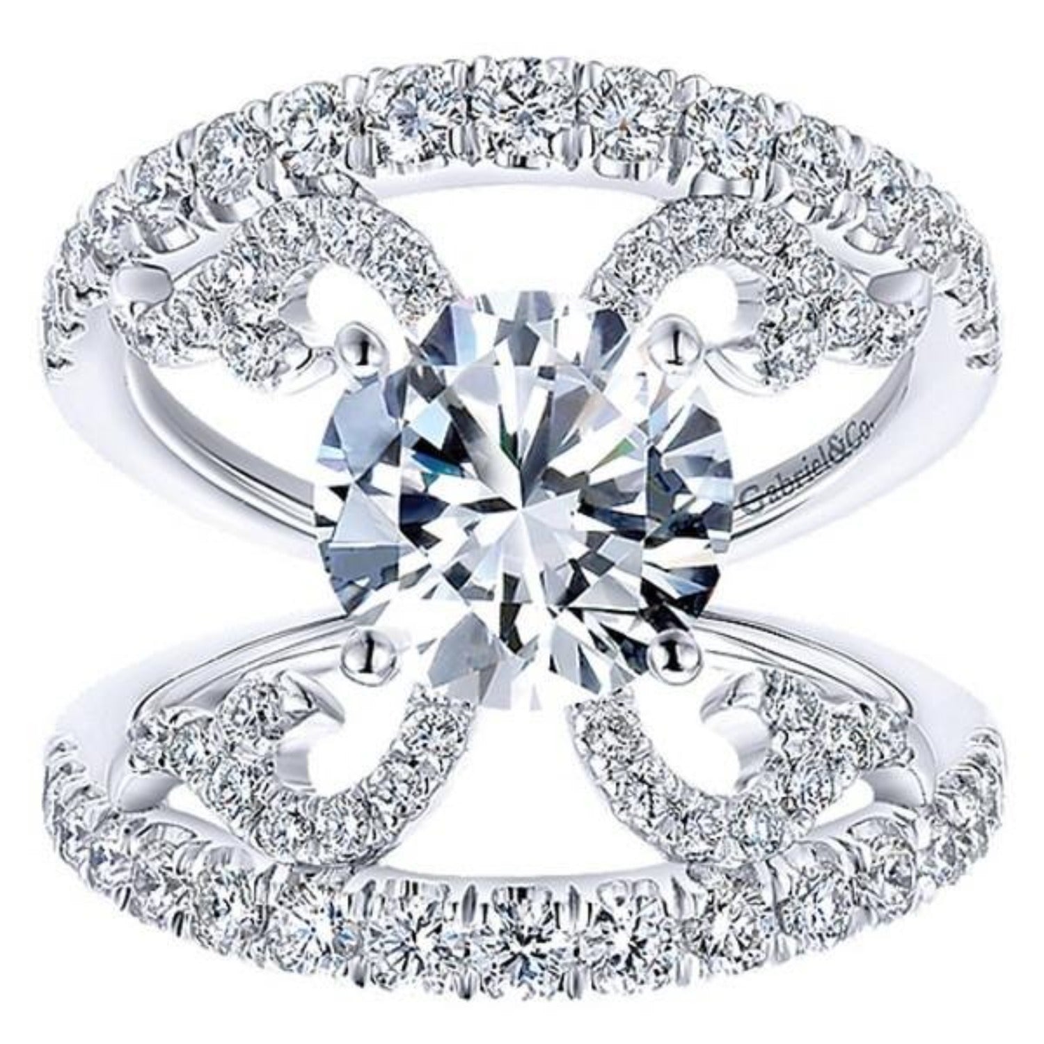 Gabriel & Co. "Riley" Split Shank Scrollwork Diamond Engagement Ring