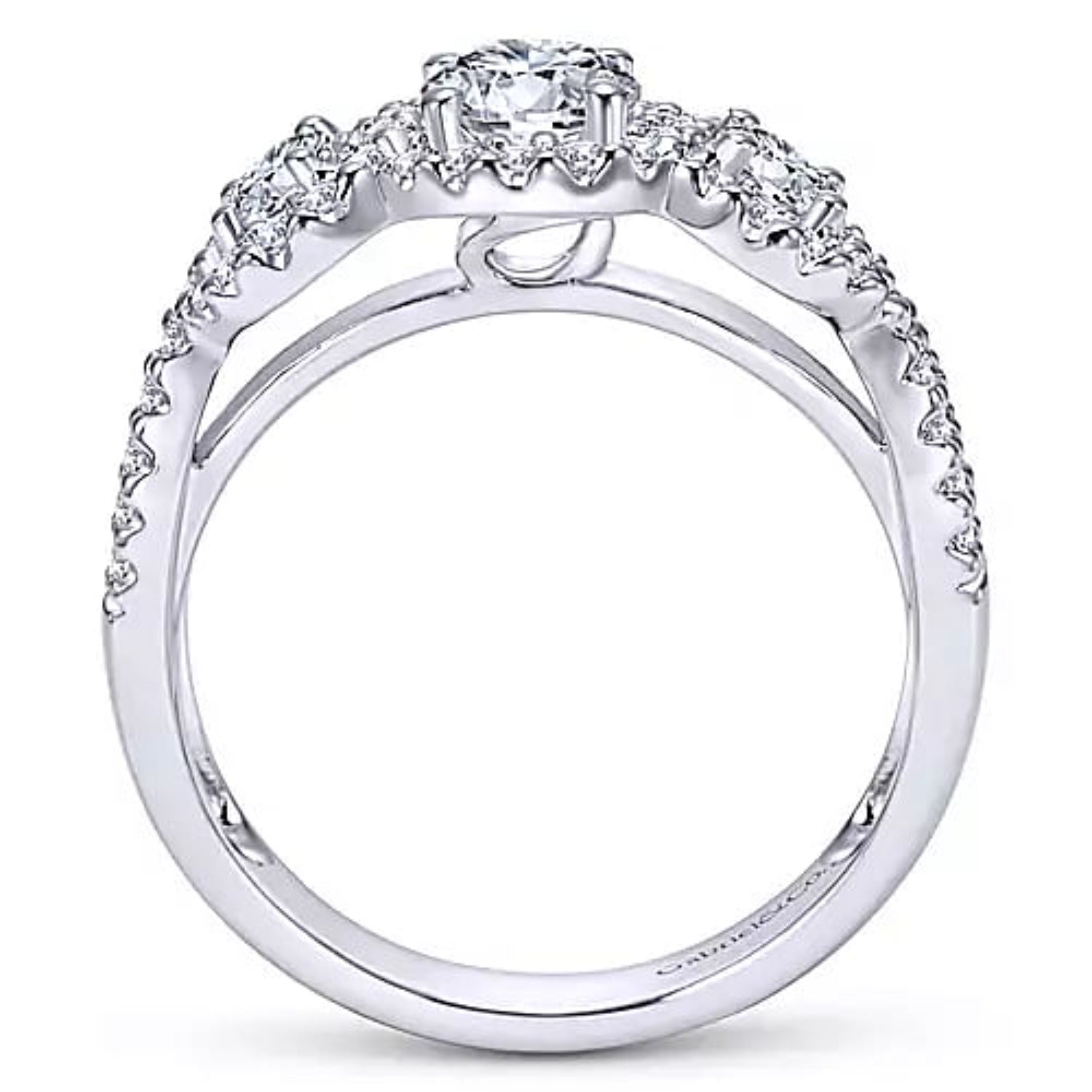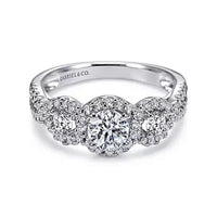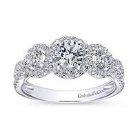 HOME / Gabriel & Co. Three Diamond Halo Engagement Ring
