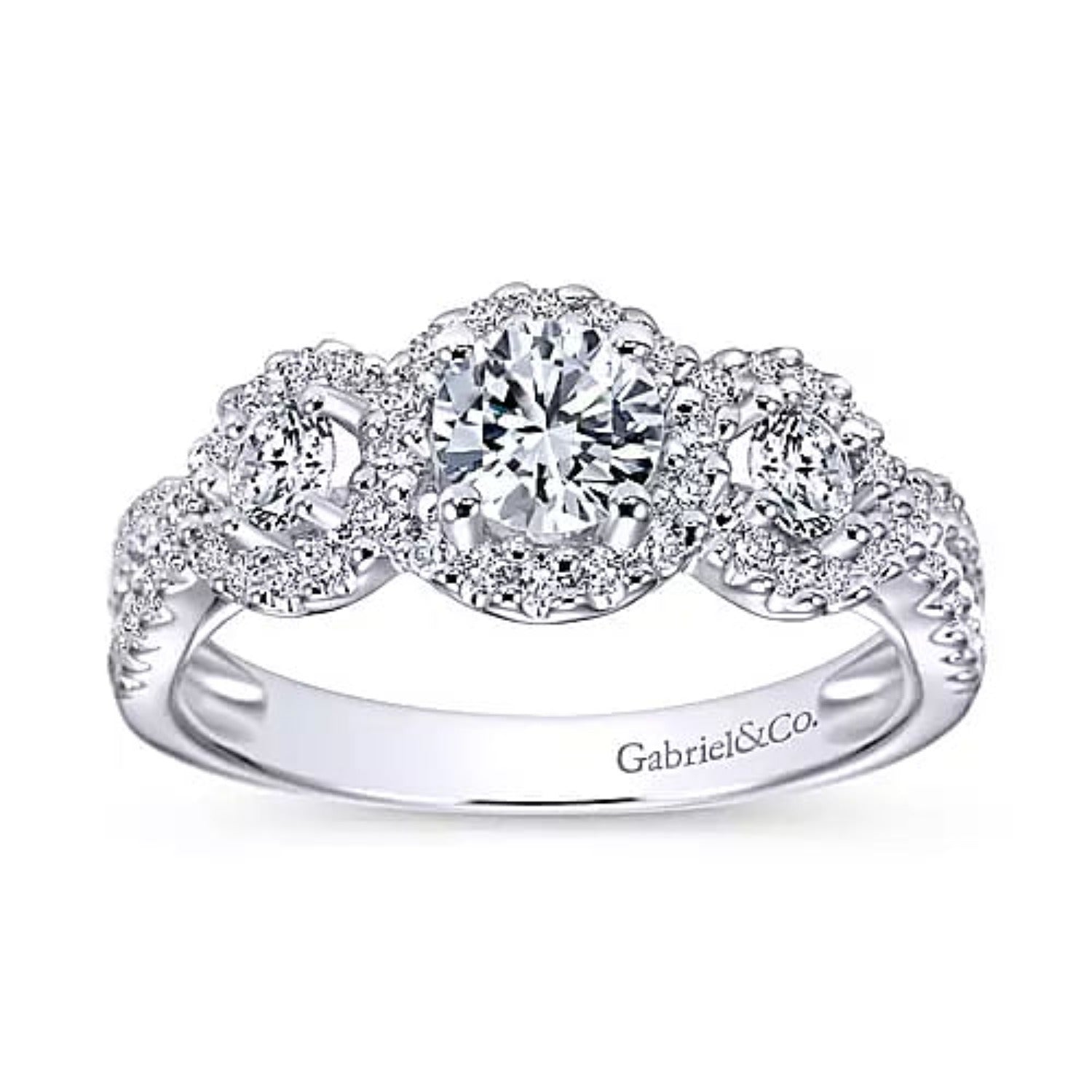 Gabriel & Co. Three Diamond Halo Engagement Ring