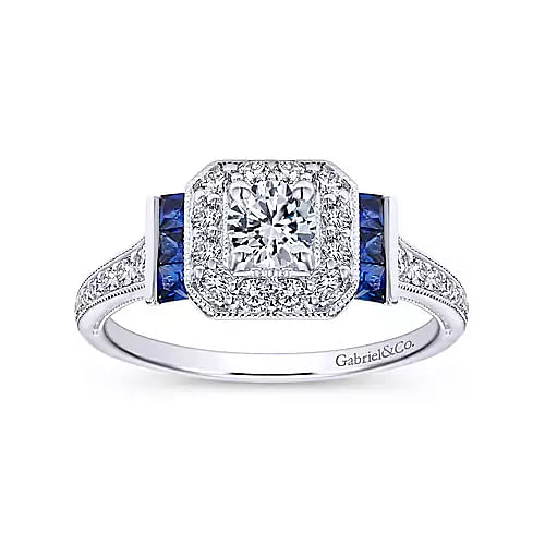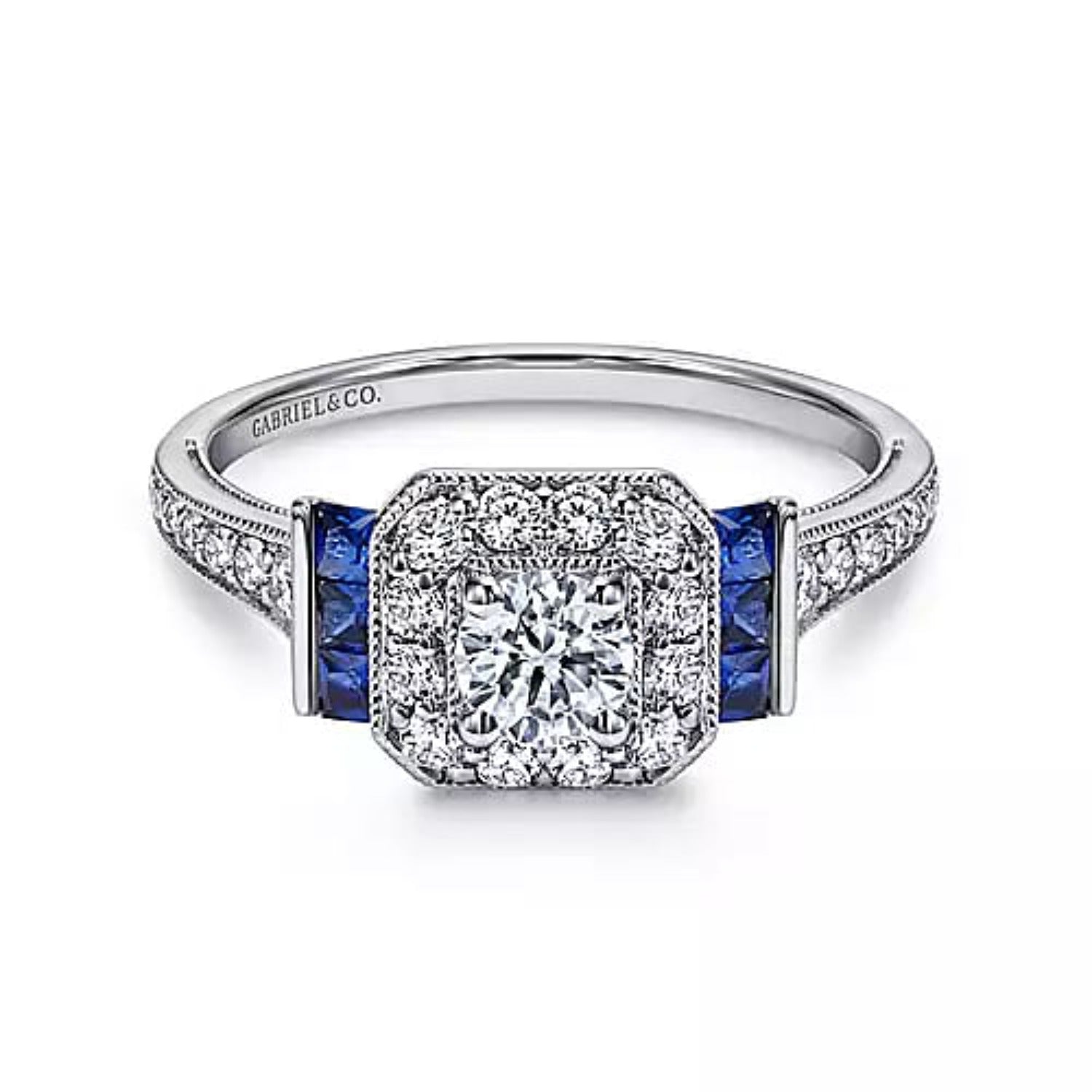 Gabriel & Co. Vintage Style Blue Sapphire & Diamond Engagement Ring