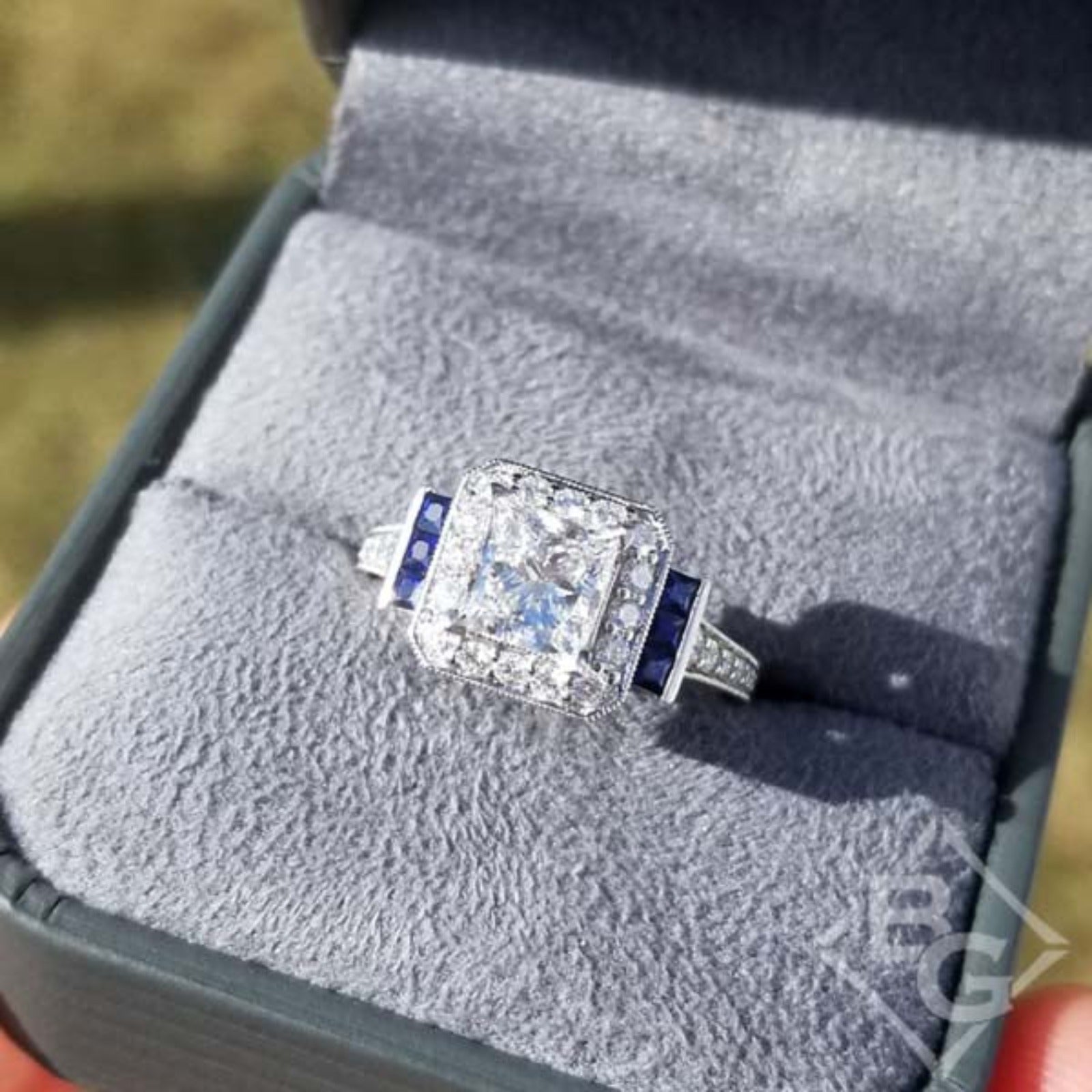 HOME / Gabriel & Co. Vintage Style Blue Sapphire & Diamond Engagement Ring