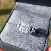 Crafted with A Quality Sapphire color stones and D4 quality diamonds, this ring exudes enduring beauty and sophistication. Available in 14K or 18K white, rose, or yellow gold, platinum, and palladium, this ring can accommodate any size diamond. Each ring comes with a ring box, jewelry appraisal, and ships fully insured to the point of delivery. Indulge in timeless elegance with this Gabriel Bridal engagement ring.