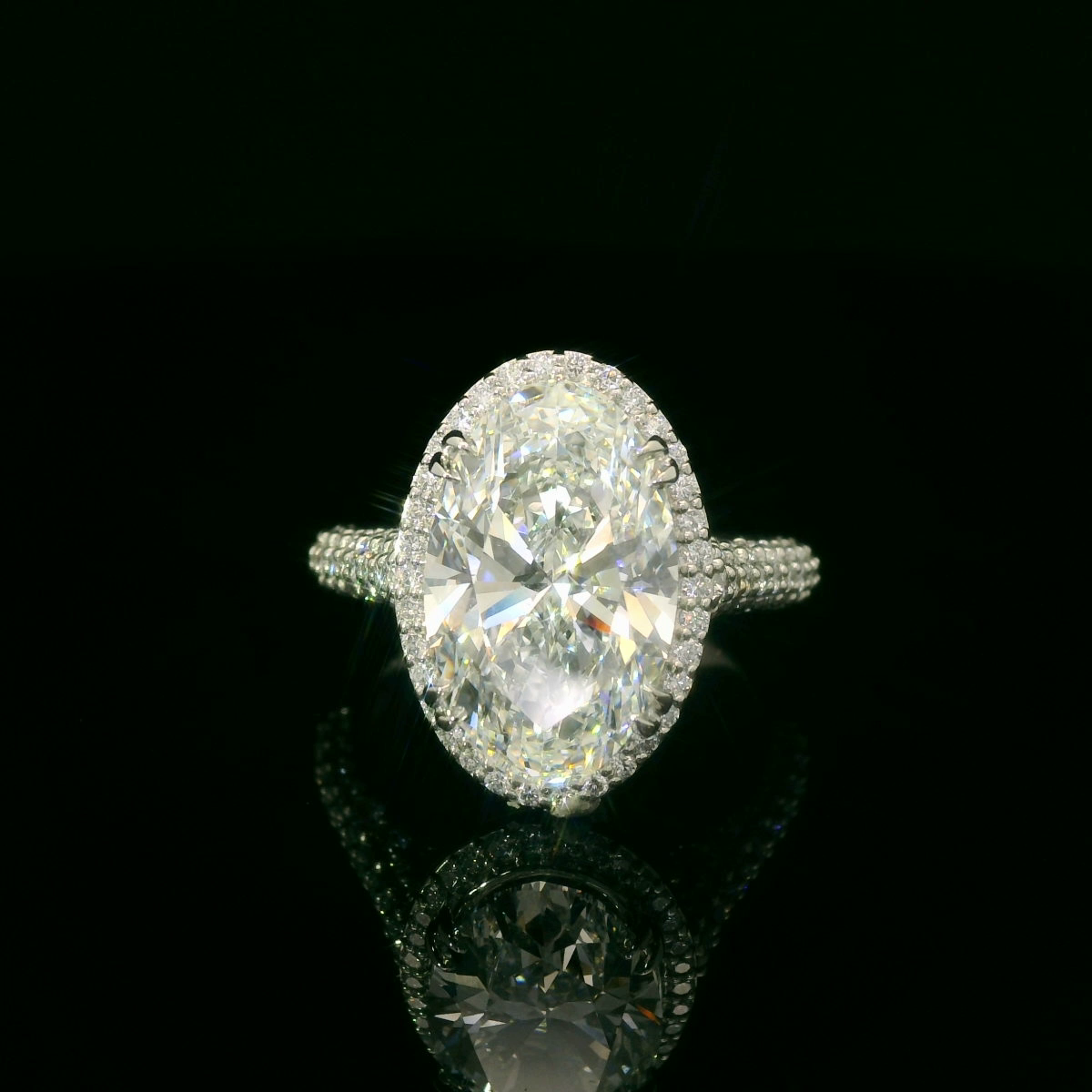 This stunning oval diamond ring captures the essence of elegance and sophistication. The brilliant cut diamond is surrounded by a delicate halo of smaller stones, creating a mesmerizing sparkle that catches the light beautifully. Perfect for engagements or special occasions, this ring is a timeless piece that will be cherished forever. I can make this or a similar style with any precious metal and offer you the option of natural mined diamonds or our UltraFire Lab Grown Diamonds.
