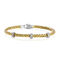 HOME / Woven Bangle in 18k Gold with Diamonds