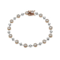 This beautiful bracelet features sparkling stations of diamonds set in round and floral patterns.