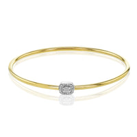 This sleek, elegant bangle stands out with a sparkling emerald diamond at its center.
