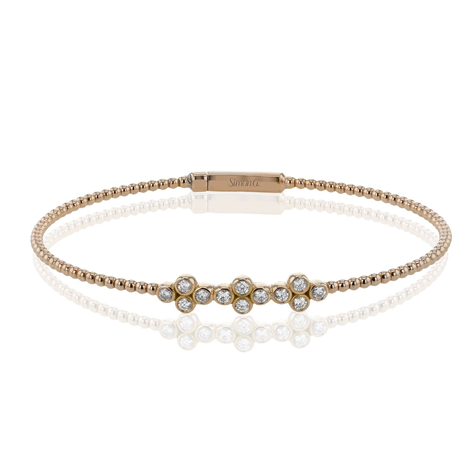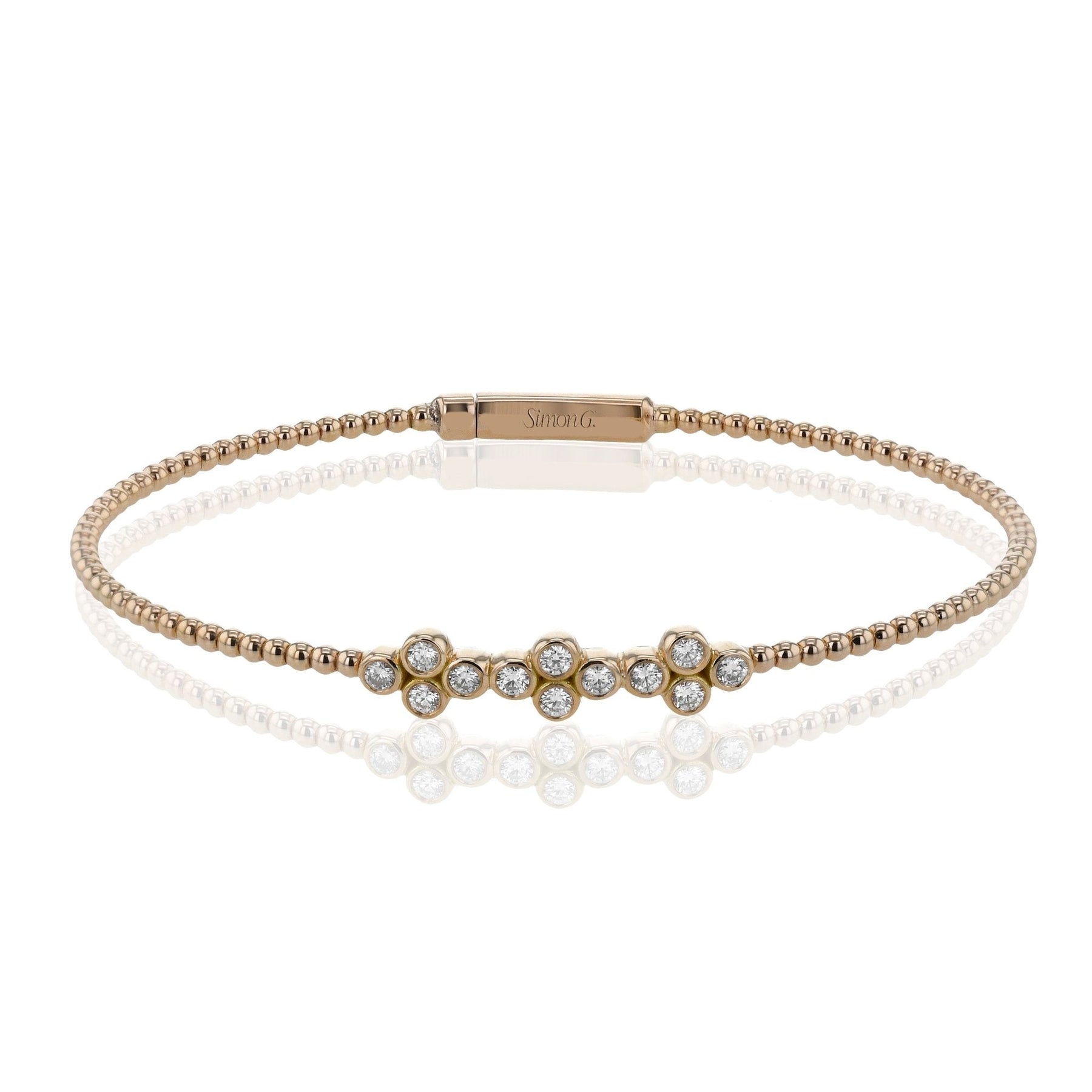 This lovely bangle in rose gold features clover clusters of brilliant white diamonds.