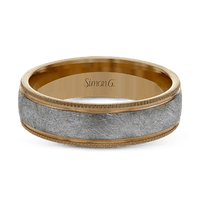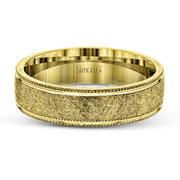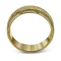 This classic men's wedding band features a matte texture in the center with high-polish gold edges.