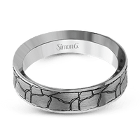 This modern men's wedding band adds an innovative surface design to a classic shank.