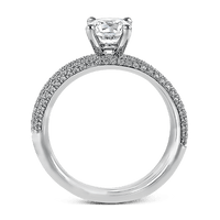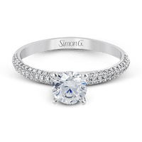 This lovely engagement ring adds sparkling flair to a classic design and is adorned with Pavé-set diamonds.