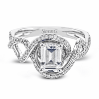 Classic with a modern twist, this engagement ring features sparkling round white diamonds set in a dramatic openwork design.