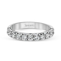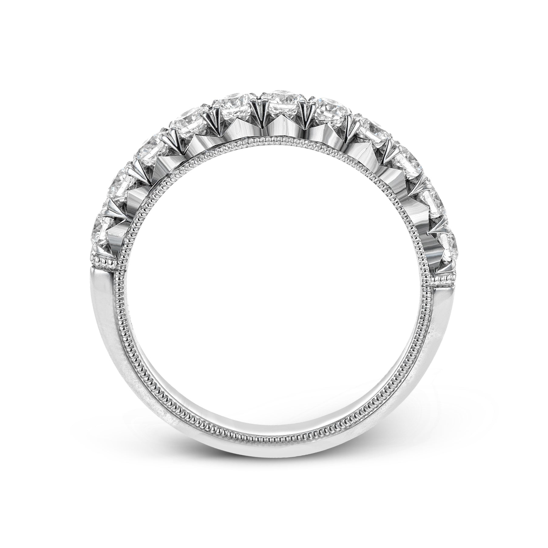 This classic wedding band features an intricate design with a distinctive diamond setting that achieves maximum brilliance.
