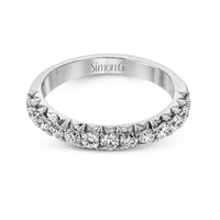 This band pairs perfectly with an engagement ring, or can be worn on its own or stacked with other rings. it contains .50 ctw of white diamonds.