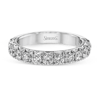 This classic wedding band features a distinctive setting style that shows off the .97 ctw of white diamonds to their full advantage.