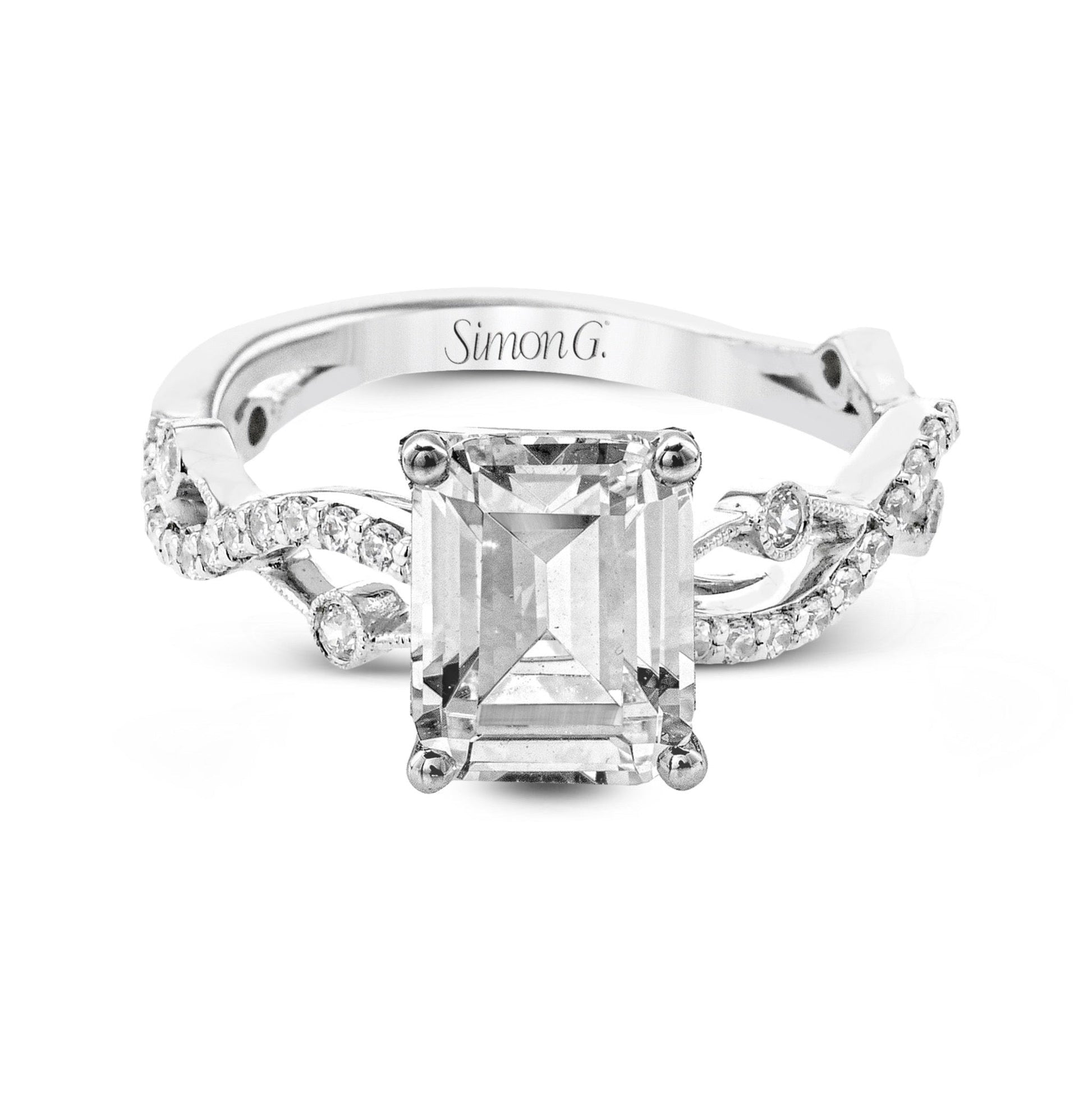 HOME / Emerald-Cut Criss-Cross Engagement Ring In 18k Gold With Diamonds