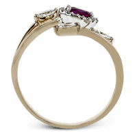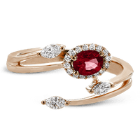 This delightful 18k white and rose gold ring is set with one .29 ctw spinel and .18 ctw of white marquise and .06ctw of white round diamonds in its bypass design