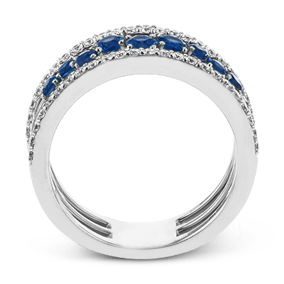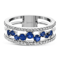 This ring features a delightful, meandering path of sapphires, rubies or emeralds nestled between sides adorned with sparkling white diamonds.