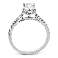 This dazzling ring sparkles from every angle with a hidden halo design and intricately set white diamonds.