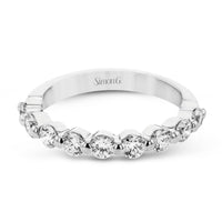 This beautiful wedding band is adorned with shimmering white diamonds.