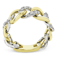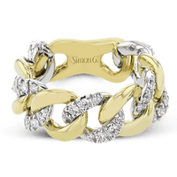This two tone right hand ring from our chain link collection gracefully alternates 0.64 ctw of diamond covered links with high polish golden ones.