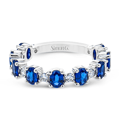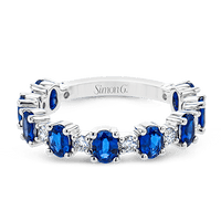 The perfect addition to any stack or bold enough to stand alone, this 18k white gold band showcases oval sapphires and diamonds.