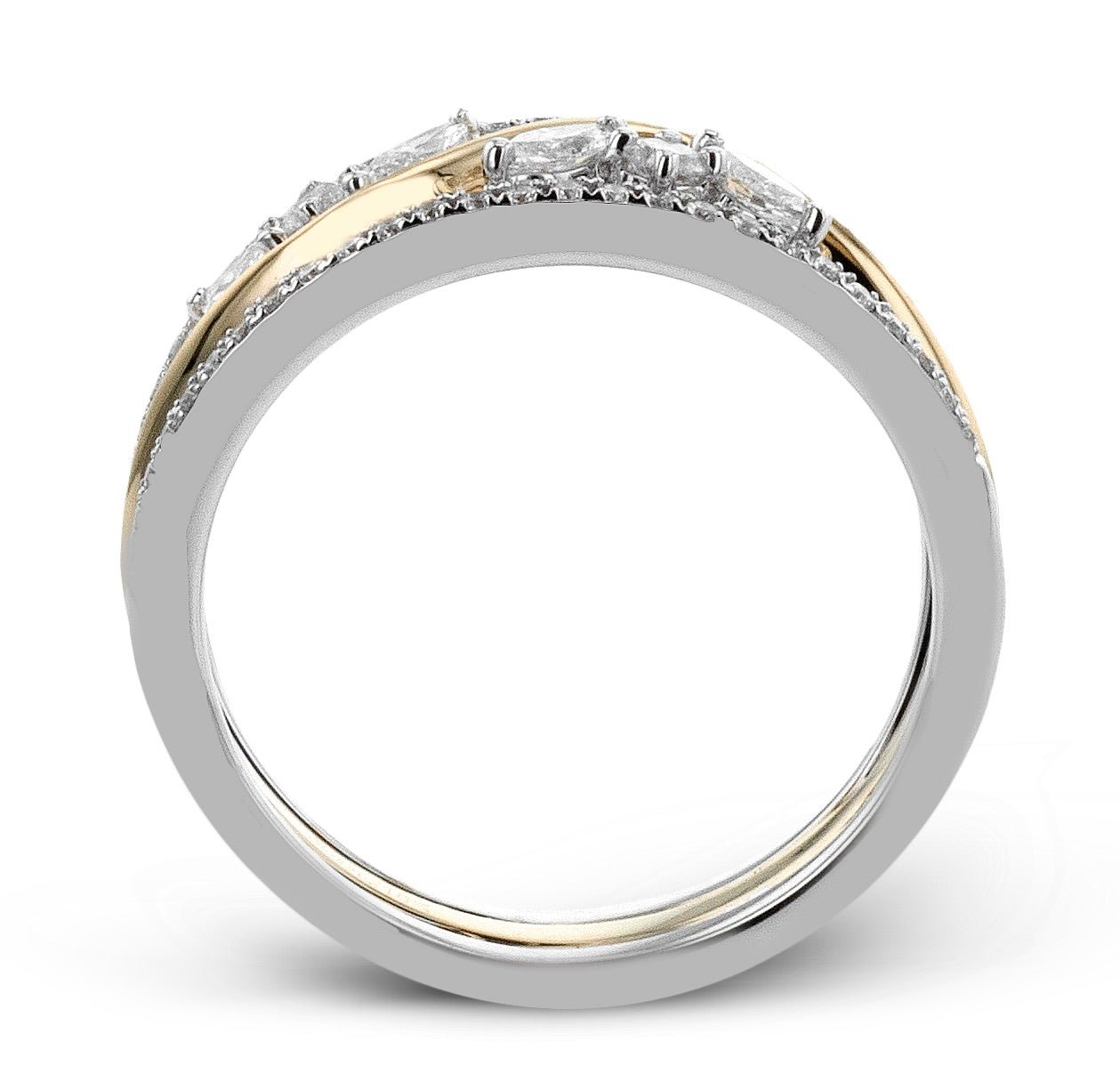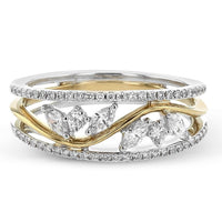 This beautiful ring features a two-tone design set with a combination of brilliant marquise and round diamonds.