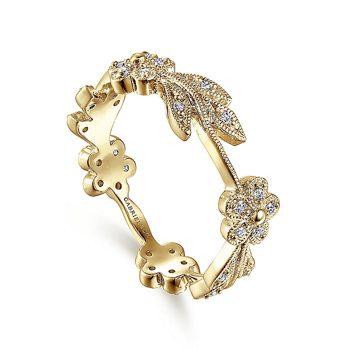 HOME / Gabriel & Co. LR4251Y45JJ 14K Yellow Gold Diamond Floral Contoured Stackable Ring