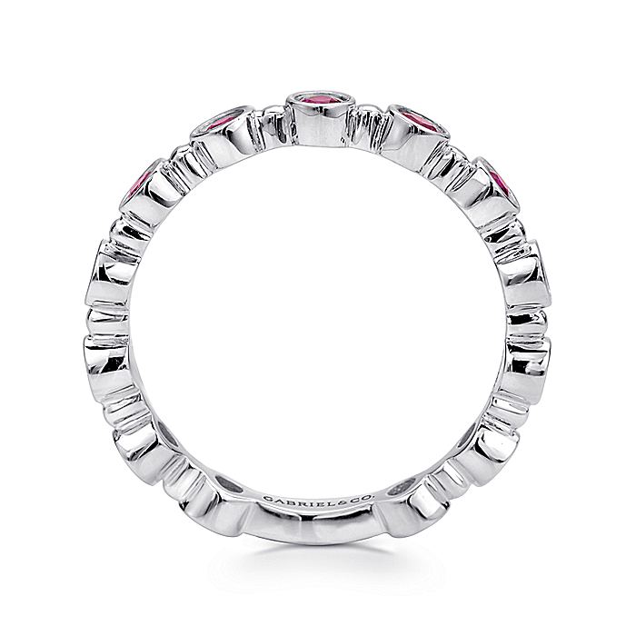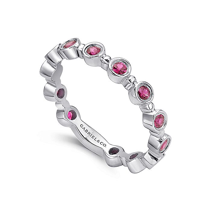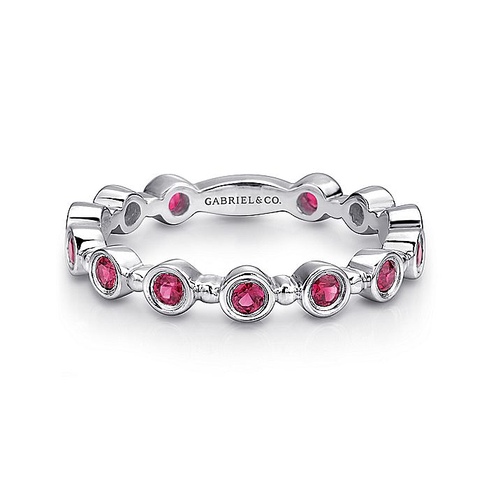 HOME / Gabriel & Co. LR4584W4JRA 14K White Gold Round Bezel Station Ruby Stackable Ring