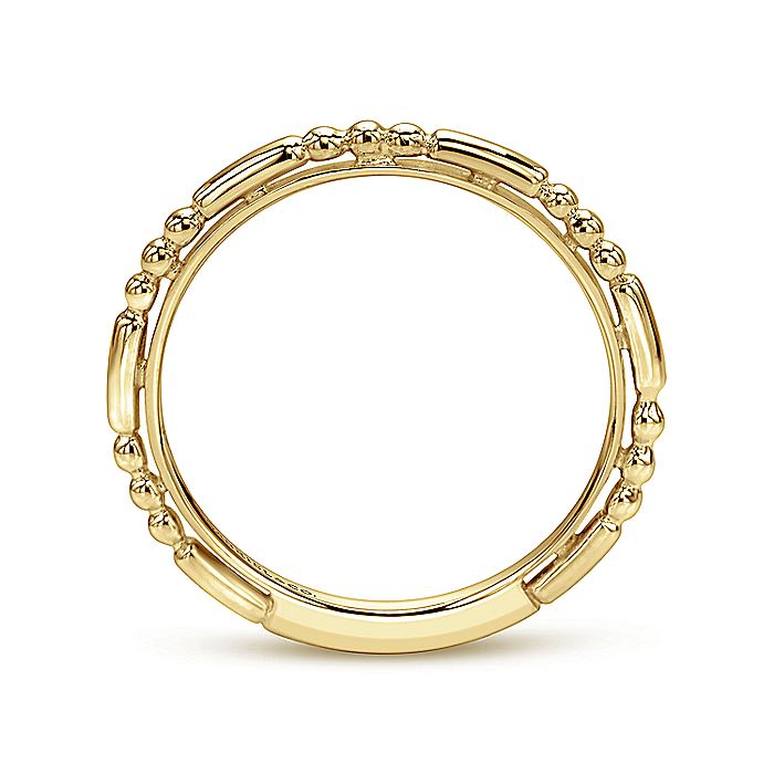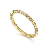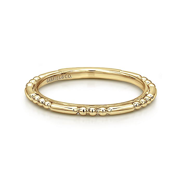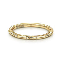 This simple and stylish ring can be mixed and matched to your heart's content. The sculpted 14K yellow gold band boasts a unique beaded effect. Express your personal style when you create a one-of-a-kind stack featuring this stackable ring.