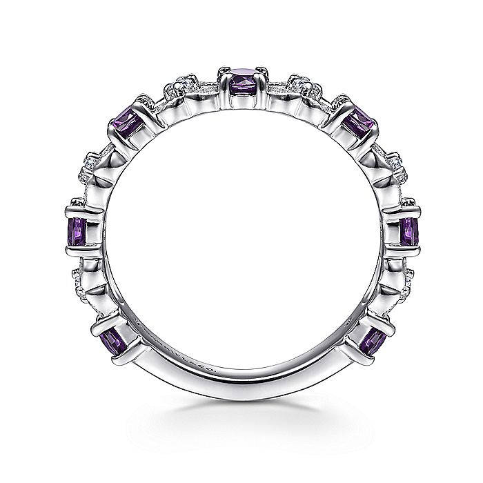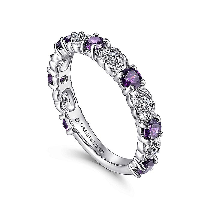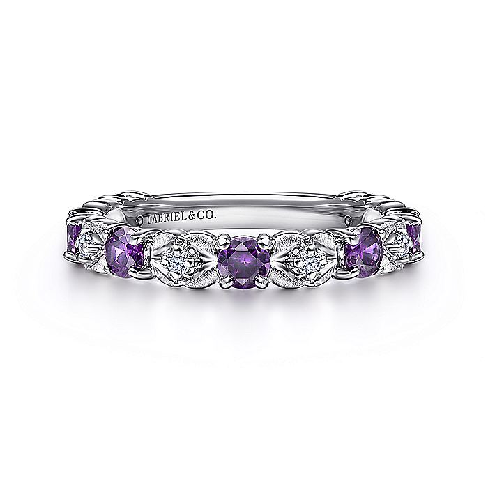 HOME / Gabriel & Co. LR4928W45AM 14K White Gold Alternating Amethyst and Diamond Station Ring