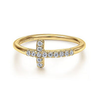 Gabriel & Co. LR50221Y45JJ 14K Yellow Gold Sideways Diamond Cross Ring