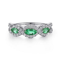 HOME / Gabriel & Co. LR50257W45EA 14K White Gold Twisted Diamond Rows and Emerald Marquise Stones Ring