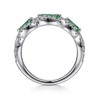 Gabriel & Co. LR50257W45EA 14K White Gold Twisted Diamond Rows and Emerald Marquise Stones Ring