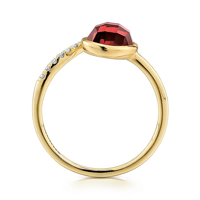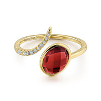 Gabriel & Co. LR51053Y45GN 14K Yellow Gold Oval Garnet and Diamond Bypass Split Ring