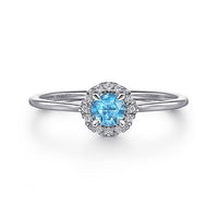 Gabriel & Co. LR51264W45BT 14K White Gold Blue Topaz and Diamond Halo Promise Ring