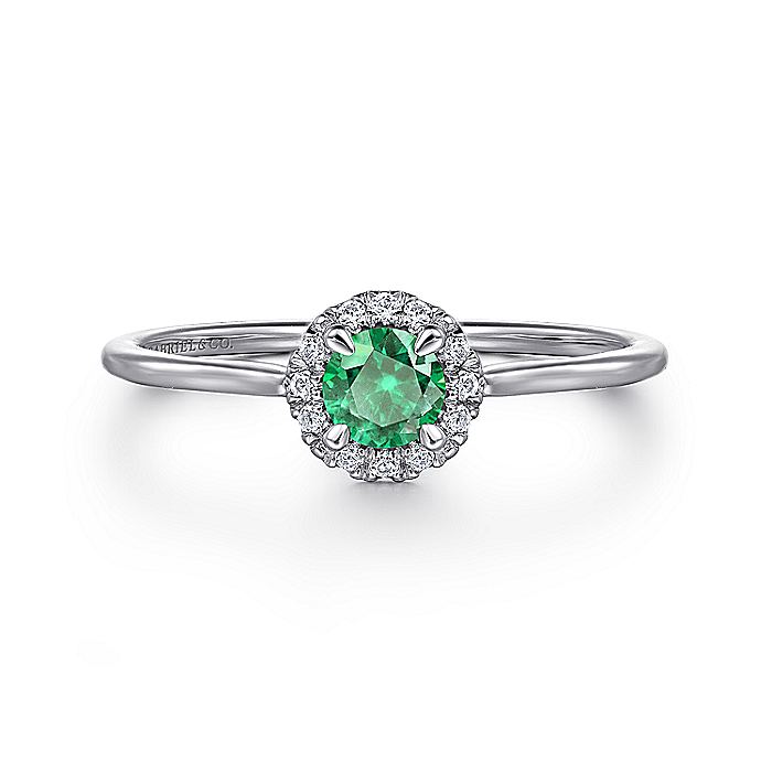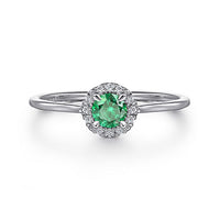 Gabriel & Co. LR51264W45EA 14K White Gold Emerald and Diamond Halo Promise Ring