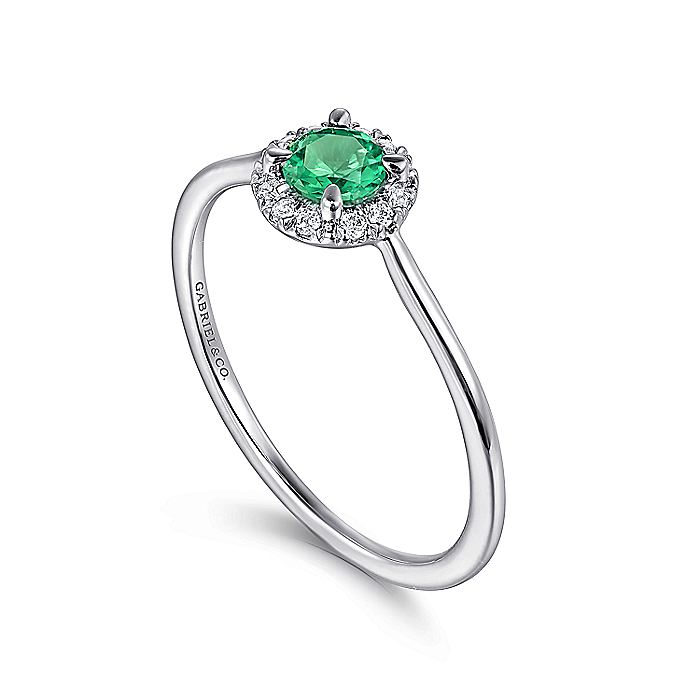 HOME / Gabriel & Co. LR51264W45EA 14K White Gold Emerald and Diamond Halo Promise Ring