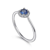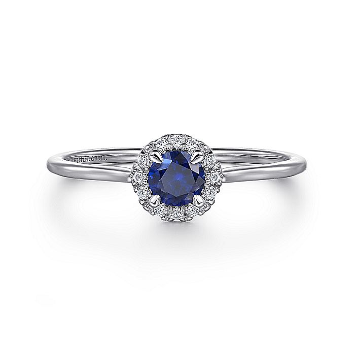 HOME / Gabriel & Co. LR51264W45SA 14K White Gold Blue Sapphire and Diamond Halo Promise Ring