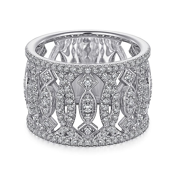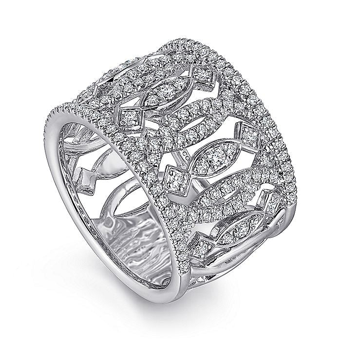 Gabriel & Co. LR51336W45JJ 14K White Gold Wide Open Pattern Diamond Ring