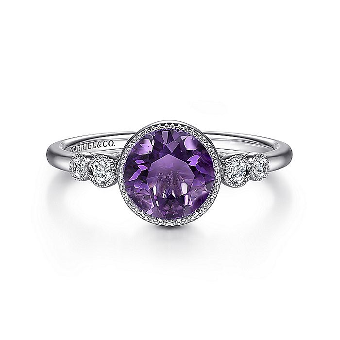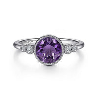 HOME / Gabriel & Co. LR51448W45AM 14K White Gold Round Bezel Set Amethyst and Diamond Ring