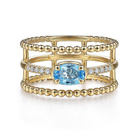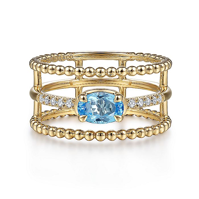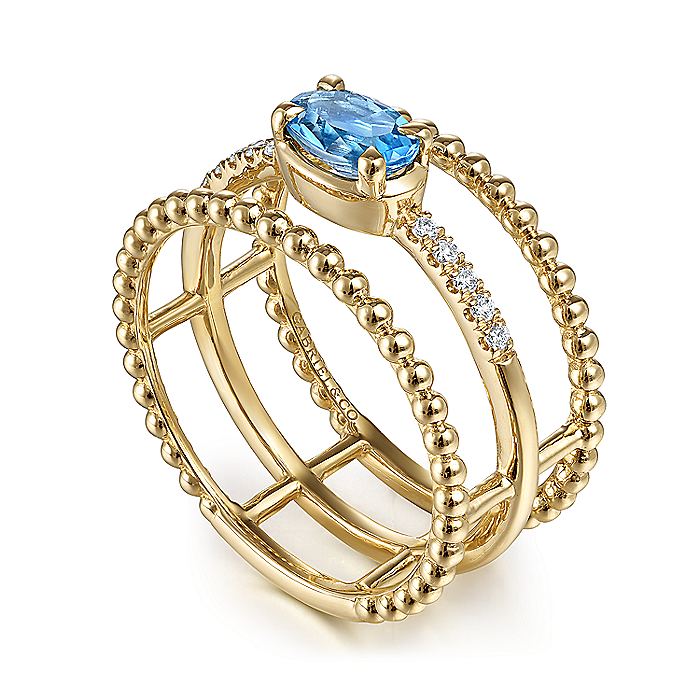 Gabriel & Co. LR51458Y45BT 14K Yellow Gold Oval Swiss Blue Topaz and Diamond Three Row Ring