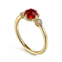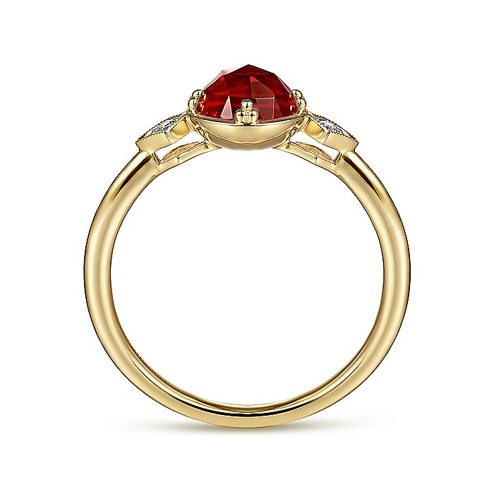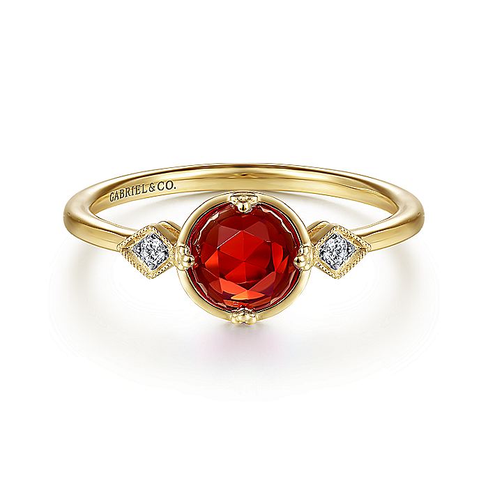 HOME / Gabriel & Co. LR51462Y45GN 14K Yellow Gold Three Stone Garnet and Diamond Ring