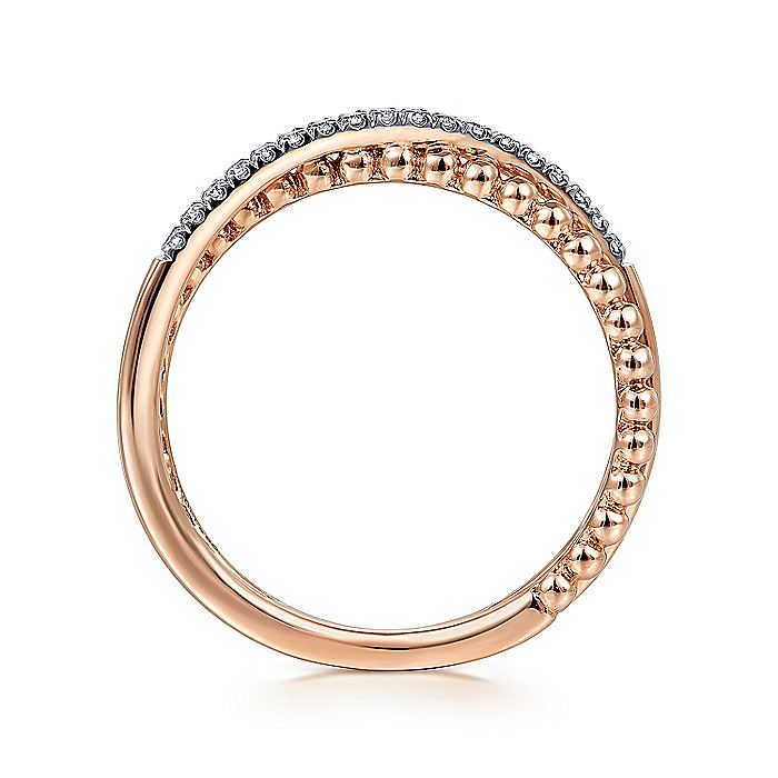 Gabriel & Co. LR51463K45JJ 14K Rose Gold Beaded Pavé Diamond Criss Cross Ring