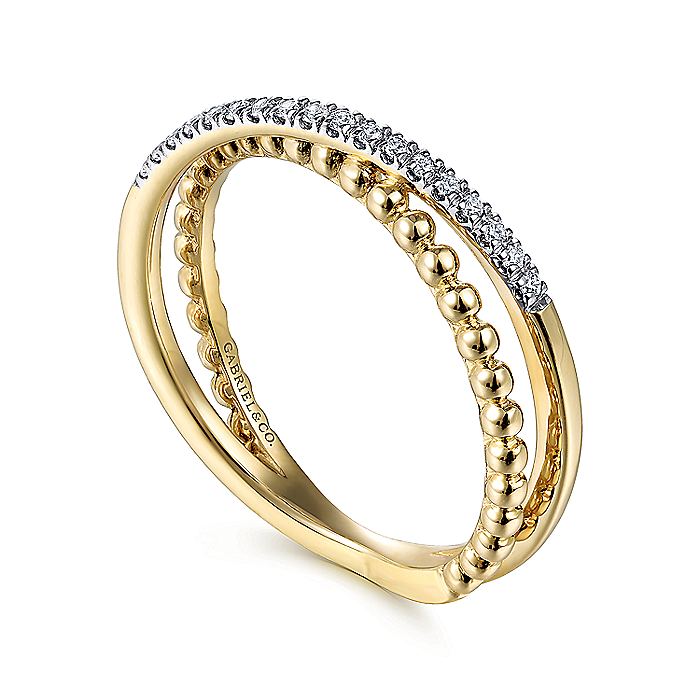HOME / Gabriel & Co. LR51463Y45JJ 14K Yellow Gold Beaded Pavé Diamond Criss Cross Ring