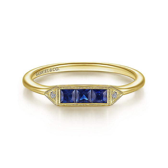 HOME / Gabriel & Co. LR51464Y45SA 14K Yellow Gold Diamond and Trio Princess Cut Sapphire Ladies Ring