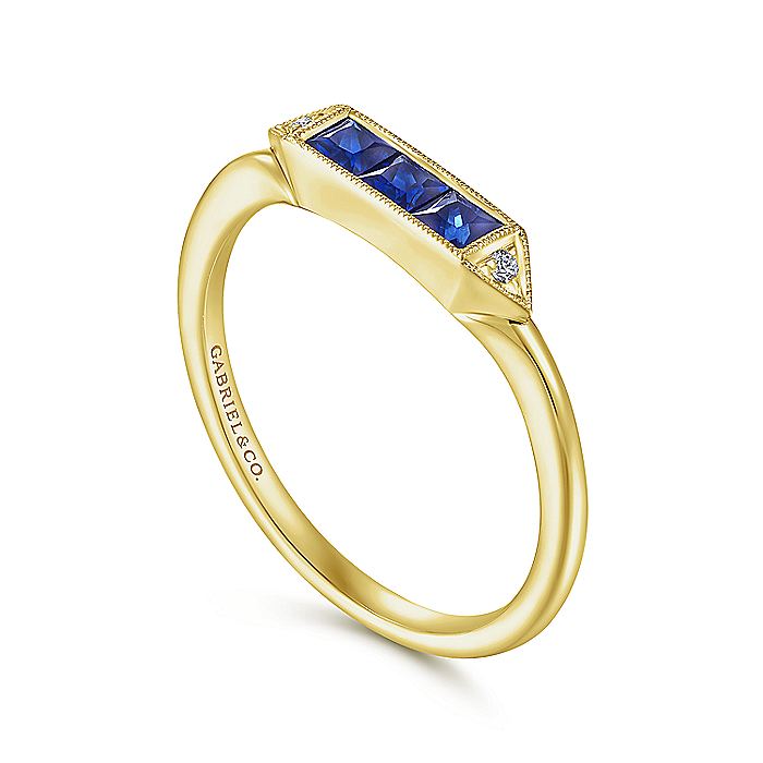 Gabriel & Co. LR51464Y45SA 14K Yellow Gold Diamond and Trio Princess Cut Sapphire Ladies Ring