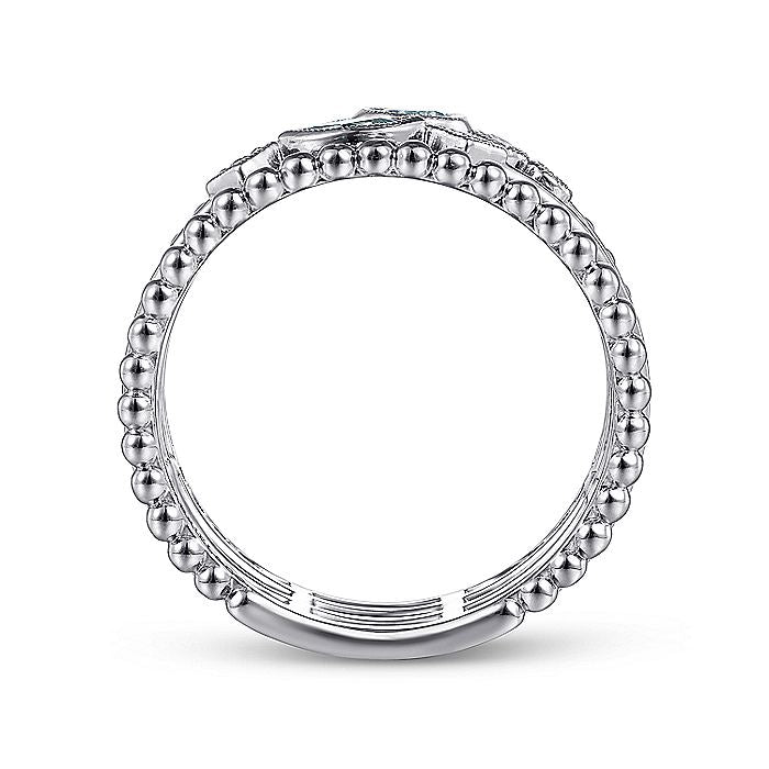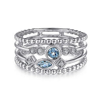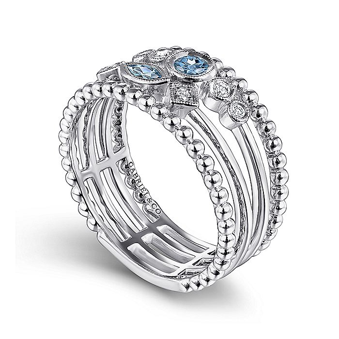 Gabriel & Co. LR51466W45BT 14K White Gold Swiss Blue Topaz and Diamond Multi Row Ring