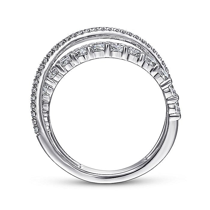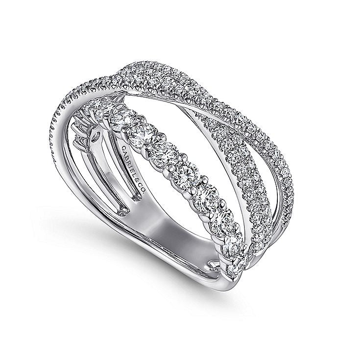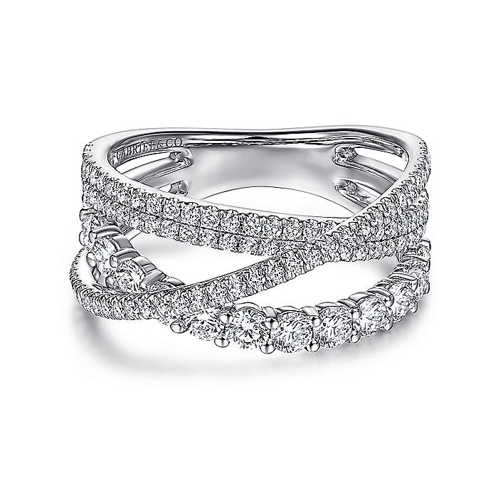 HOME / Gabriel & Co. LR51499W45JJ 14K White Gold Criss Crossing Layered Diamond Ring in size 9.5mm width